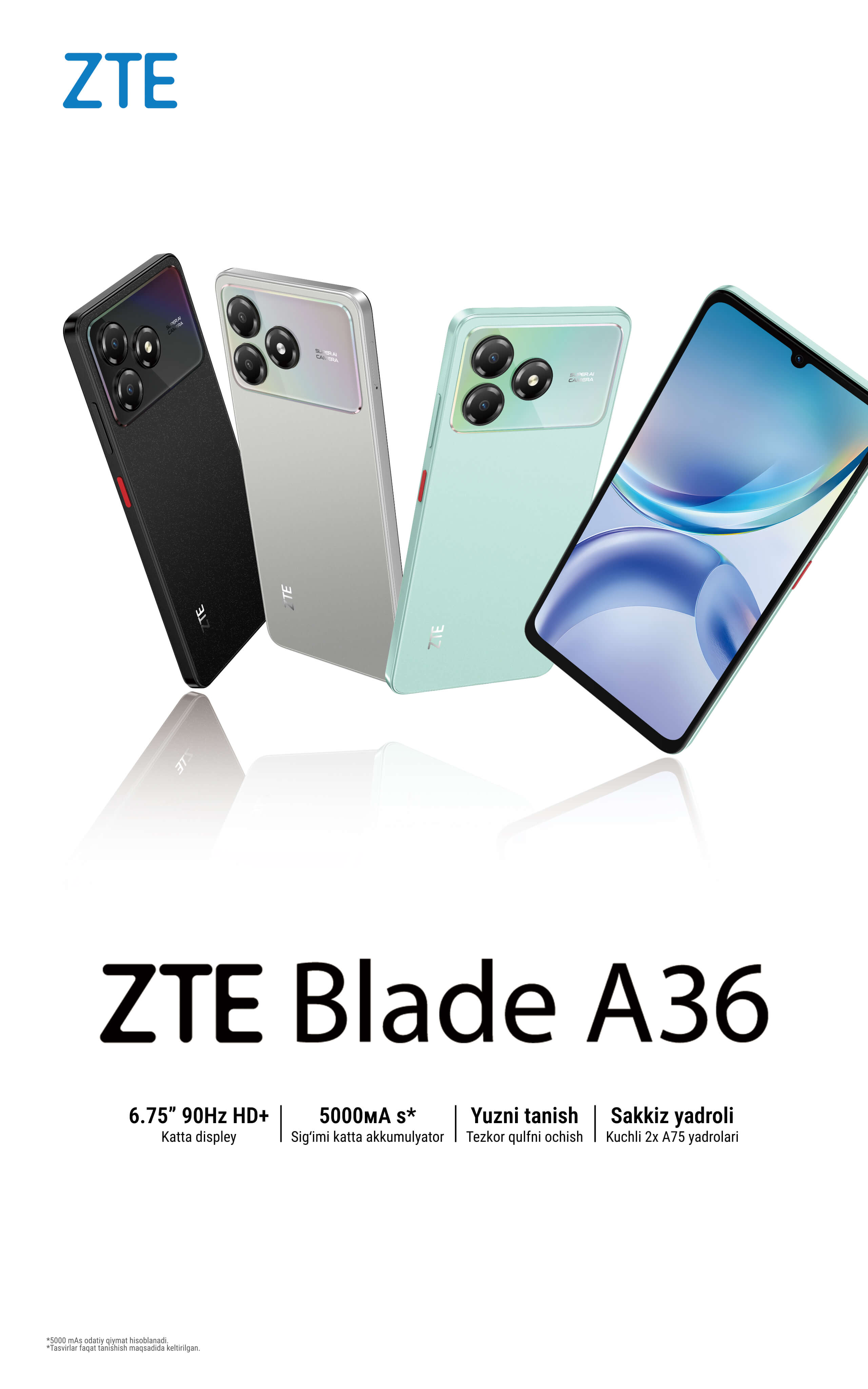 ZTE Blade A36 4.5G tarmog‘ida uzluksiz ishlashni ta’minlaydi,
