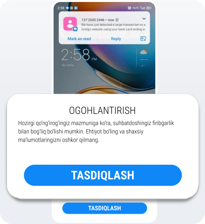 Sun’iy intellekt ovozli chaqiruvlar va matnli xabarlardagi firibgarlik kontentini intellektual aniqlash orqali tarmoq xavfsizligini oshiradi va kiberfiribgarlikning faol oldini olishni ta’minlash uchun real vaqt rejimida ogohlantirishlarni taqdim etadi.
