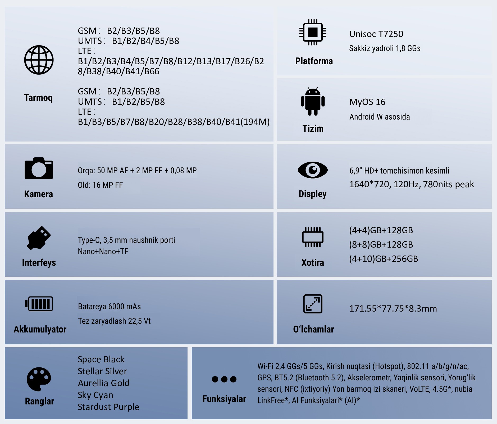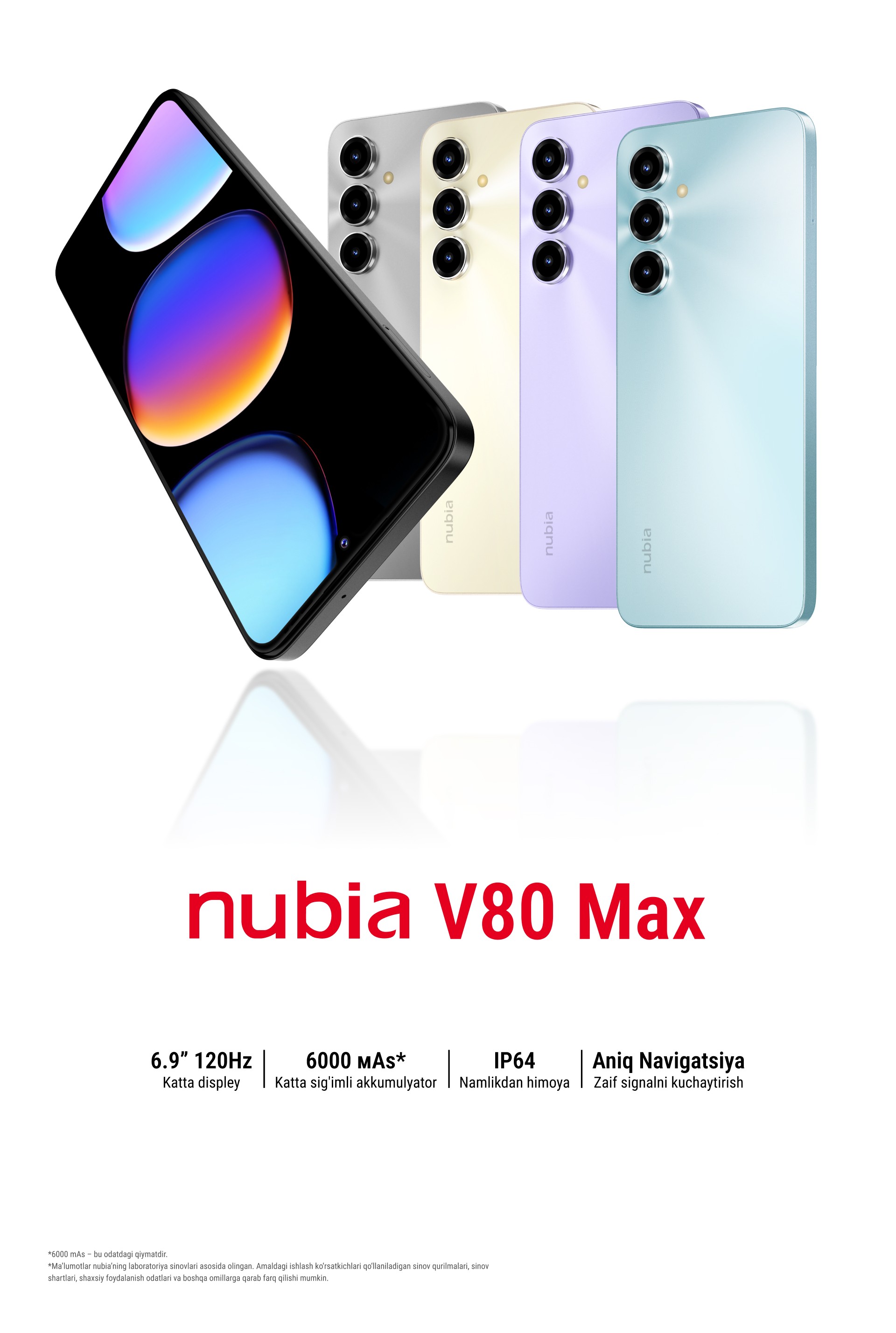 *Ma’lumotlar nubia laboratoriya sinovlariga asoslangan. Haqiqiy unumdorlik ishlatiladigan sinov qurilmalari, sinov sharoitlari, shaxsiy foydalanish odatlari va boshqa omillarga qarab farq qilishi mumkin.